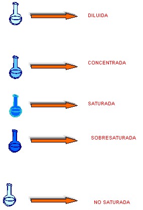 e) Solución sobresaturada o supersaturada Es aquella cuya concentración es mayor que la solución saturada, o sea, cuando el disolvente a una temperatura determinada contiene mayor cantidad de soluto del que es capaz de disolver.