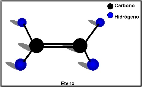 CH2=CH2 eteno, en el anterior ejemplo el prefijo et significa que el compuesto presenta dos carbonos, y el sufijo eno nos indica que se presenta un doble enlace entre carbono y carbono.