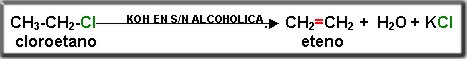 En está reacción retiramos un halógeno y un hidrógeno del monohalogenado, utilizamos como catalizador una base fuerte en solución alcohólica: