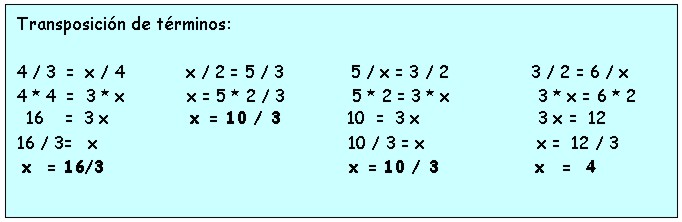 término está sumando pasa al lado contrario a restar, si está restando pasa a sumar, si está multiplicando pasa a dividir y si está dividiendo pasa al otro lado del igual a multiplicar. Los términos que se encuentren multiplicando o dividiendo a uno u otro lado del igual, al hacer la transposición de términos conservan sus signos.