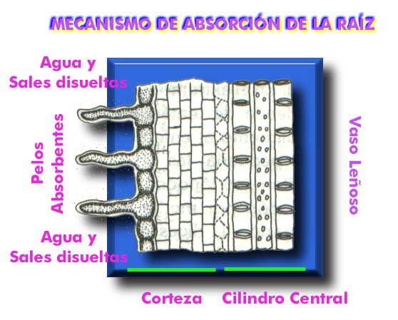 los pelos absorbentes que se encuentran en la raíz.