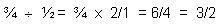 1. ¿Por cuál número hay que multiplicar a, ½ cuando se convierte en ¾? Sabemos que la división es la operación inversa de la multiplicación, y como ¾ es el producto y ½ uno de los factores, entonces: Luego a ½ hay que multiplicarlo por 3/2 para que se convierta en ¾. |