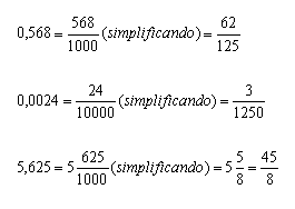 Ejemplo: Convertir 0,568, 0, 0024 y 5, 625 en fracciones decimales exactas. |