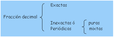 CLASES DE FRACCIONES DECIMALES Las podemos resumir en el siguiente cuadro conceptual: |