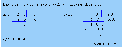 CONVERSIÓN DE FRACCIONES DECIMALES A FRACCIONES COMÚNES |