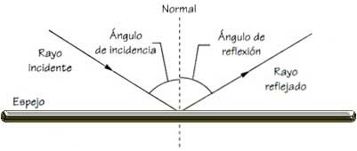 En la figura se observa un haz luminoso que incide en determinado punto de la superficie de un espejo su comportamiento es: