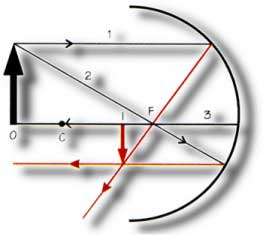 tipos de rayos que forman imágenes en los espejos esféricos: cóncavo y