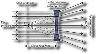 Son más gruesas por sus extremos que por su centro. Estas abren los rayos luminosos que llegan a ellas, forman imágenes de menor tamaño que el de los objetos que vemos a través de ellas.