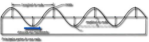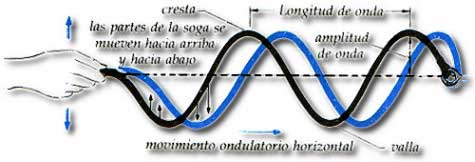 Es la distancia que existe entre una onda y otra. Un buen ejemplo para comprobar las características de las ondas, es tomar una cuerda que esté fija en un punto al agitarla con suavidad; de sus manos saldrá una