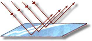 Si se traza una perpendicular al espejo el comportamiento es igual. Es una superficie lisa que refleja de una forma dirigida, casi la totalidad de la luz que le llega. |