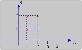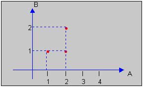 Definamos la relación, x es divisor de y. Luego entonces: R = {(1, 1), (1, 2), (2, 2)}. Gráficamente: |