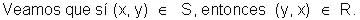 Cuando en una relación de x con y se deduce la relación y con x, se puede decir que la relación es simétrica, o sea: |