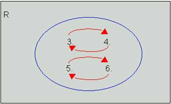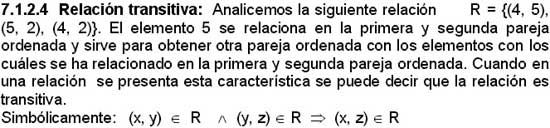 7.1.2.3 Relación simétrica: Sea la relación R = {(3, 4), (5, 6), (6, 5), (4, 3)} cada pareja ordenada de la relación tiene su recíproco, es decir para (3, 4) existe (4, 3), que también pertenece a R.