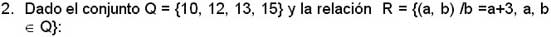 a) Realiza el conjunto de parejas ordenadas. b) Construye el diagrama correspondiente. c) Elabora el plano cartesiano. d) Hallar el dominio y el codominio de la relación. e)¿Qué tipo de relación es? |