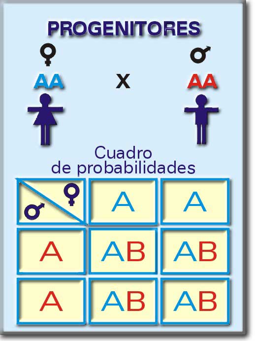 Estas características dominante se representa con la letra mayúscula A, y la característica recesiva con la letra minúscula a. Lo que significa que: