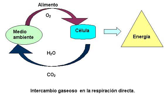 En todos los seres vivos la respiración se realiza a nivel celular. En las células, el intercambio de gases ocurre de manera directa por simple difusión. |