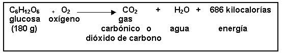 (dióxido de carbono) más agua más energía (686 kilocalorías). |