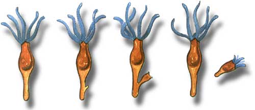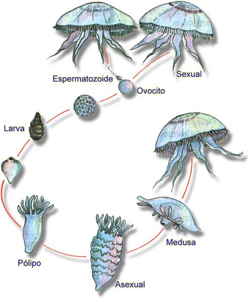 Hidras: se reproducen asexualmente por gemación y sexualmente por unión del óvulo con el espermatozoide.