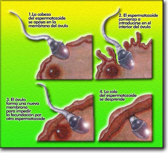 cuando llegan los espermatozoides que son transportados por la corriente.