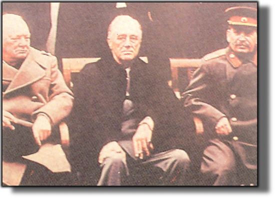 En febrero de 1945 se reunieron en la conferencia de Yalta, Franklin D. Roosevelt, José Stalin y Winston Churchill, en representación de Estados